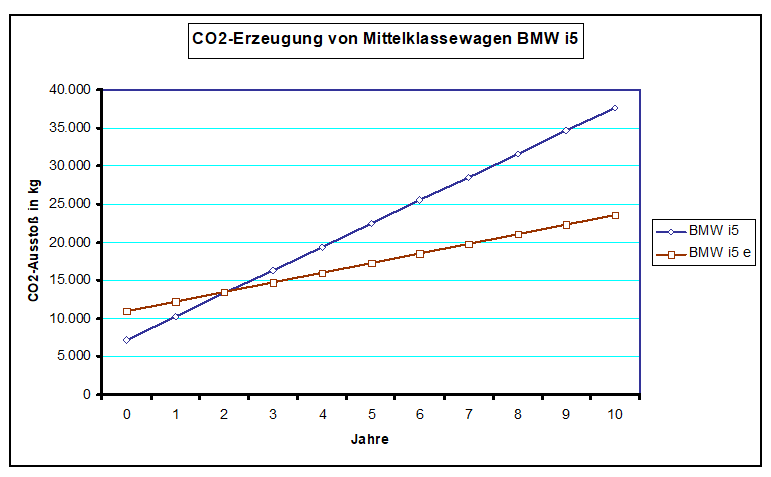 Betrachtung der Ergebnisse Es zeigt sich, dass der relativ (zur PKW- und dessen Batterieherstellung) geringe CO2-Ausstoß bei der Herstellung der Photovoltaikanlage und der Speicherbatterie bereits in einem Jahr Betrieb das PKWs eingeholt wird. Aus Sicht des Umweltschutzes eine ideale Kombination.